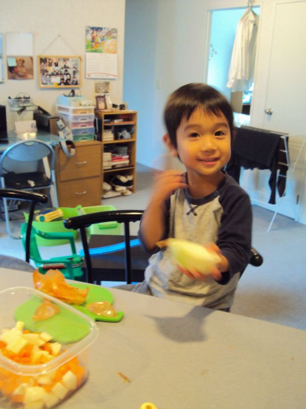 自分でずぼんをあげて、ボタンも自分でやろうとしたけど難しくて手伝ってもらってやり遂げ、
