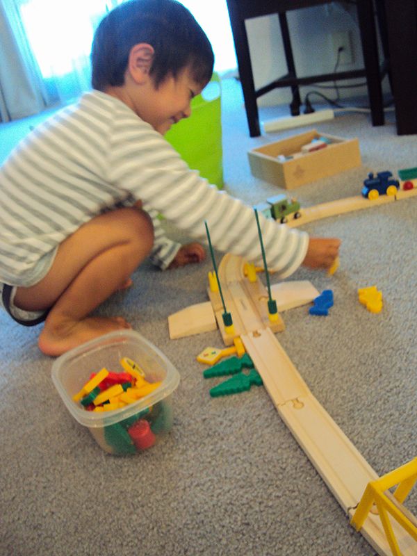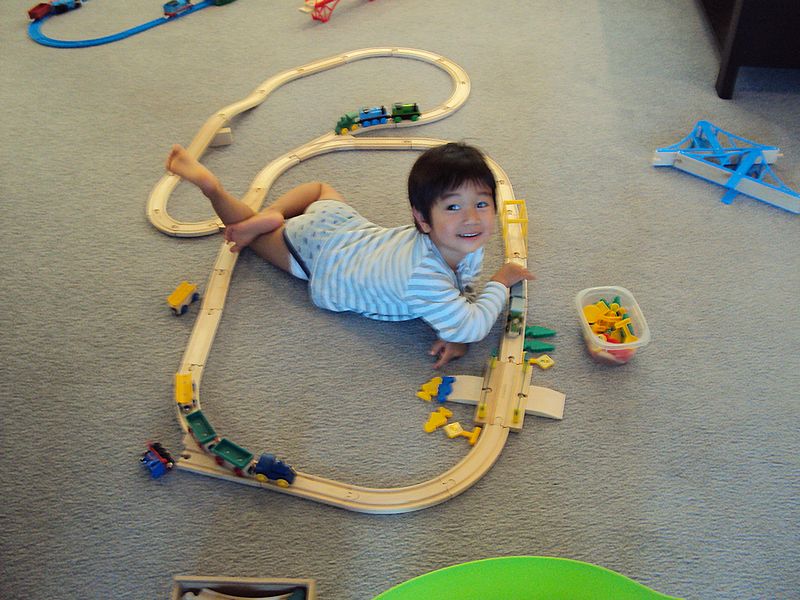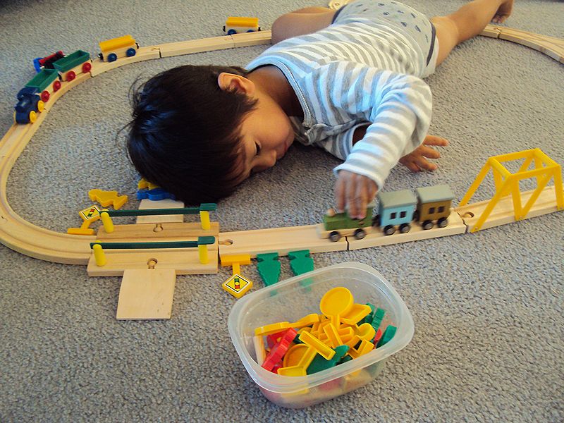 電車セットを使ってイマジネーションPlayで遊ぶセオ