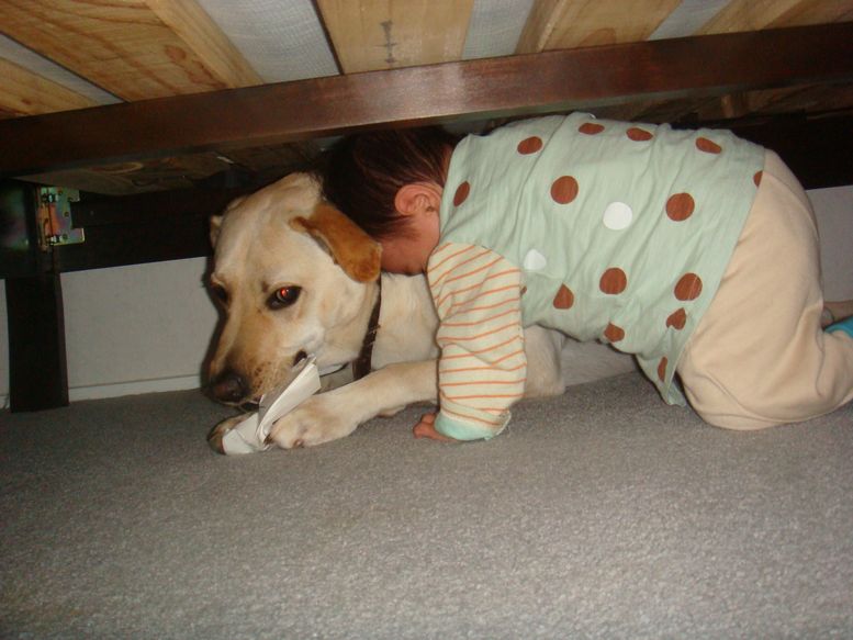 POを追いかけて、ベットの下へもぐっていく・・・