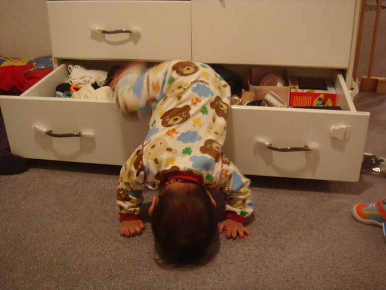 引き出しも自分でひっぱりあけて、探索