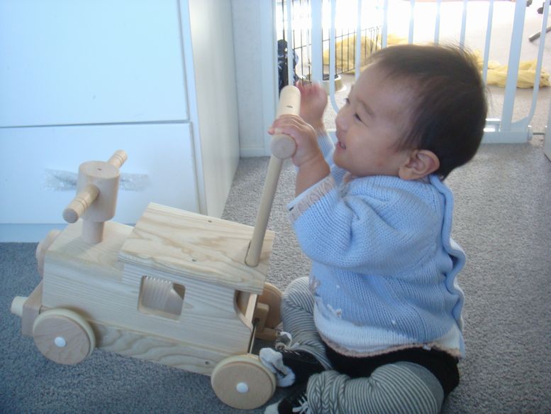 ポッポを押したり、おもちゃ箱をひっくり返したり、洋服の入っている戸棚をひっぱりだしたり、