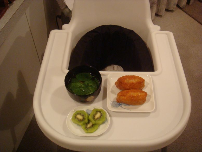 ざりがにくんの好物おいなりさんで、我が家はお祝いです。