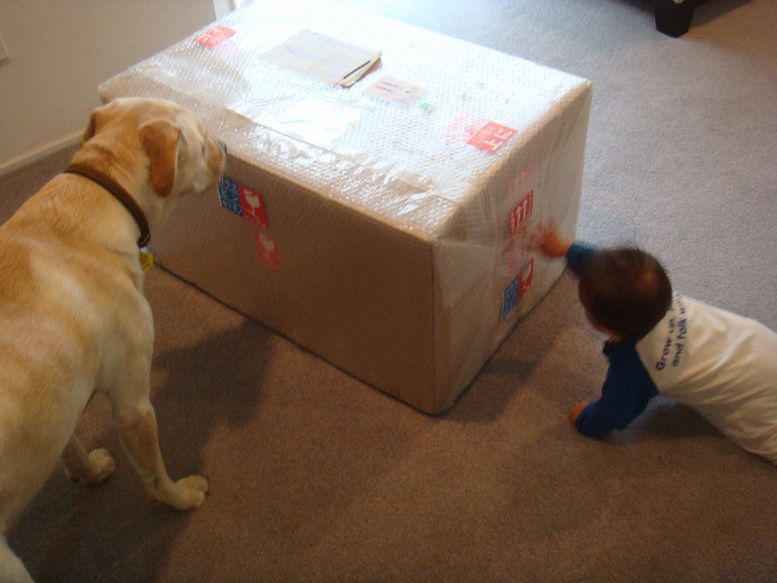 自分の体よりも何倍も大きい箱に、POもセオも興奮気味。