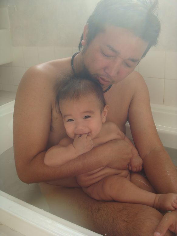 生後3ヶ月ころから、大きな湯船で入浴しています。
