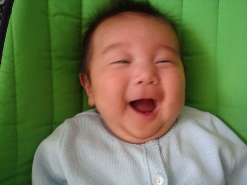 早く笑ってほしい(5ヶ月の子と比べるのもどうかと思いますが(笑))