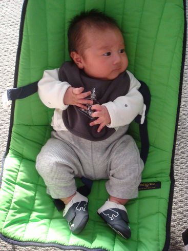 バシネットを高くしてみたりしましたが、やっぱり抱っこぐらい傾斜のあるほうがいいみたい。
