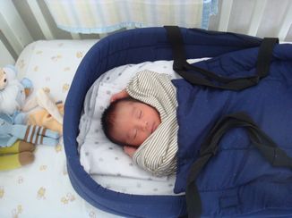 ベビーベットの中のチビベットで寝ていますZZZ