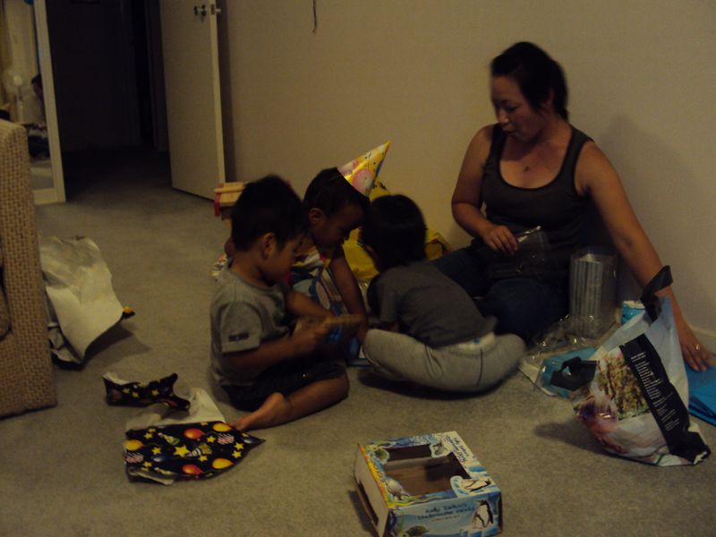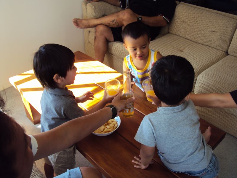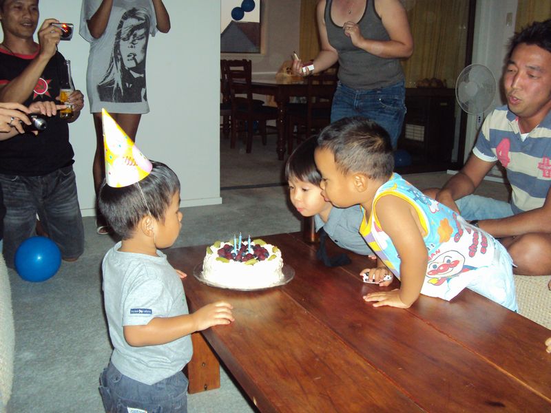ダディーたちも一緒に、NZの夏の風物・BBQにビールで、お誕生日おめでとう~。
