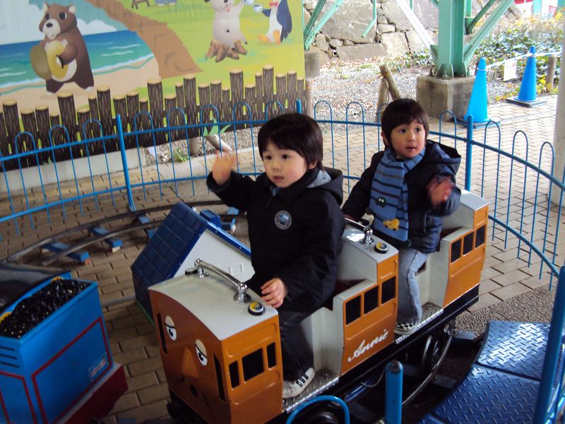ちょっと目を離すとぴゅーっと走り出し、トーマス列車の上にちょこんと乗っている(笑)