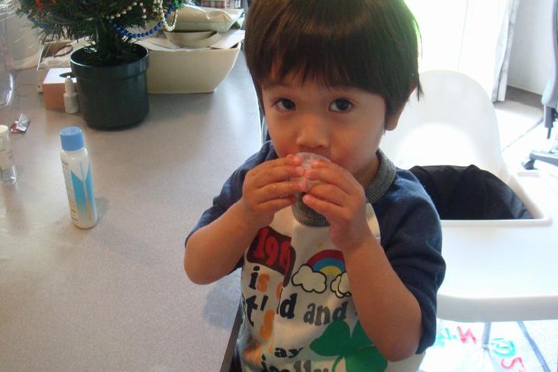 さて、プレイセンターから帰ってきたセオが牛乳を飲みたいと言ったので、