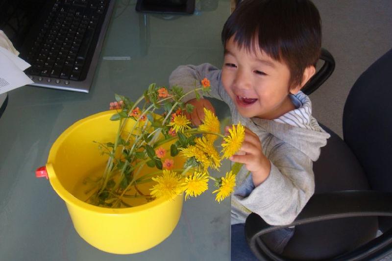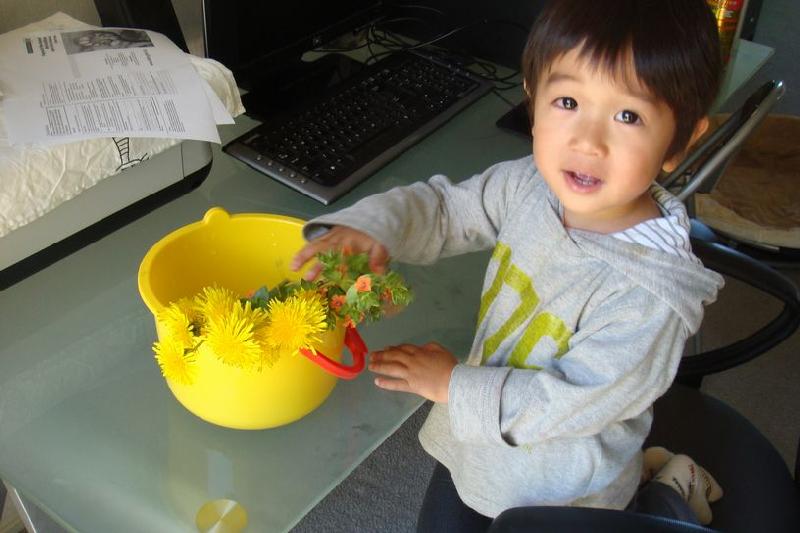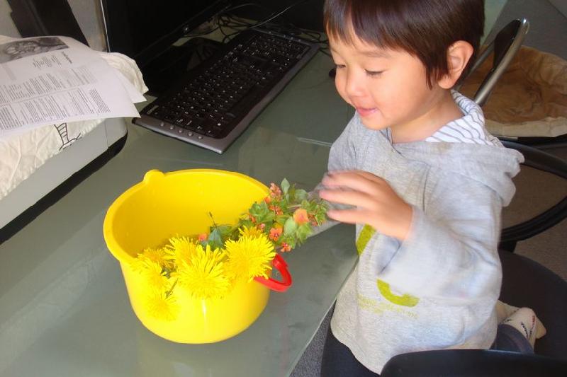 *つんだたんぽぽをミニーちゃんのお人形にあげていました。