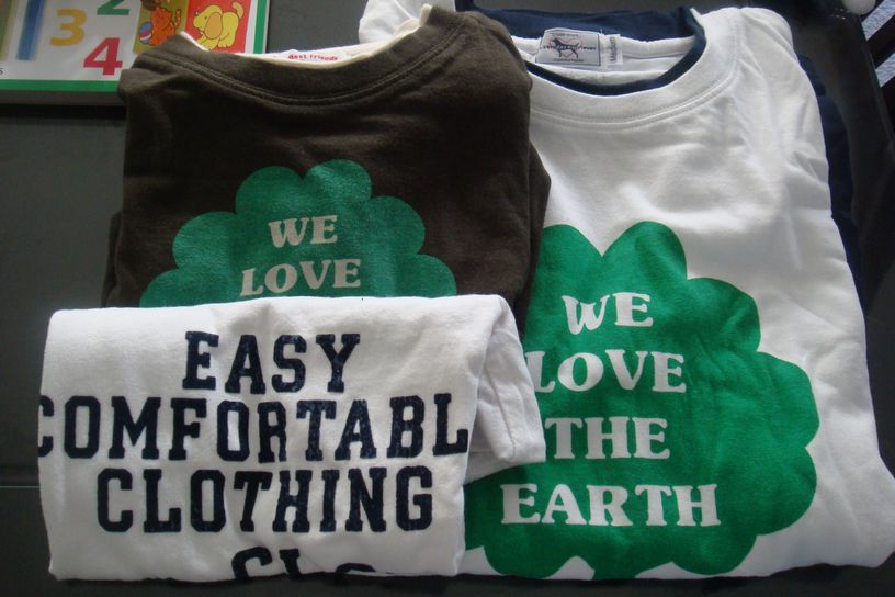 マミィーの好きなグリーンレーベルのTシャツ(りょうたろとお揃い)と傘、