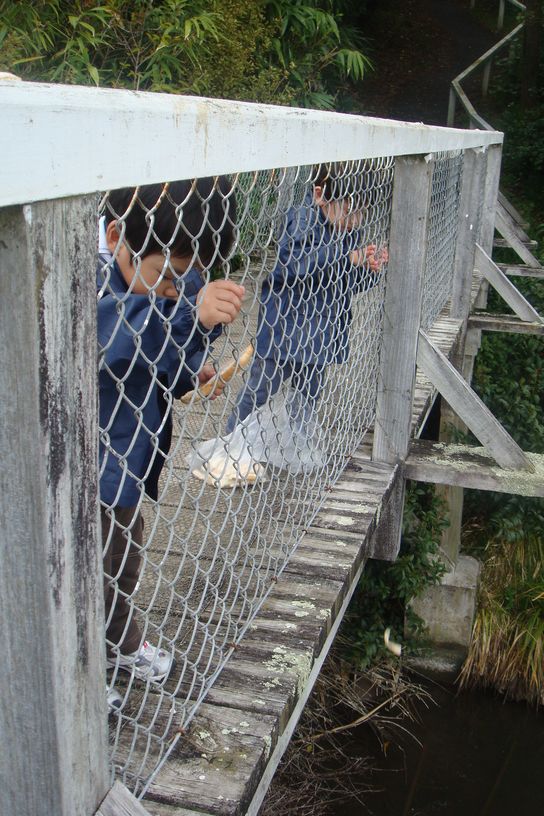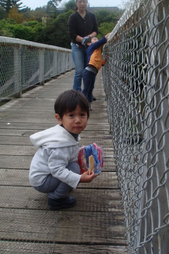 ちょっと遊んだあとは、 三輪車とぱんの耳持参で、すぐ近くの橋へ