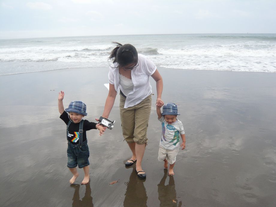 それでもりょうちゃんと2人、果敢に波に向かっていきました。