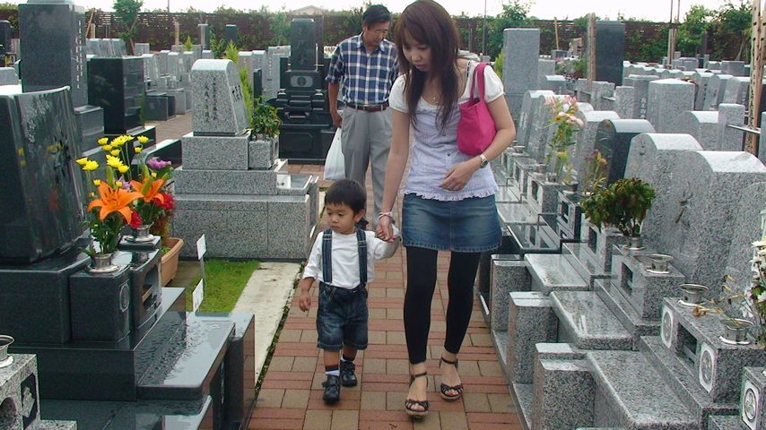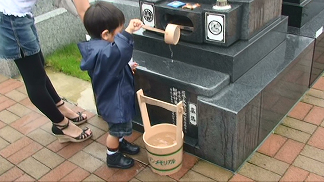 上手にばあばのお墓にお水をかけたり、