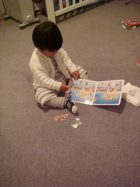 以前まっきんりーにもらったシール絵本が今まさにブーム。