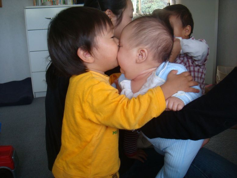弟のろみくん1歳児のえじきになる・・・の図、つんつん!!