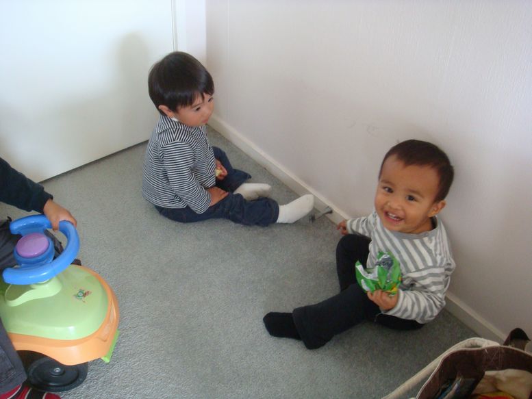 ドアのストッパーのびよよんという音が気に入った2人です。
