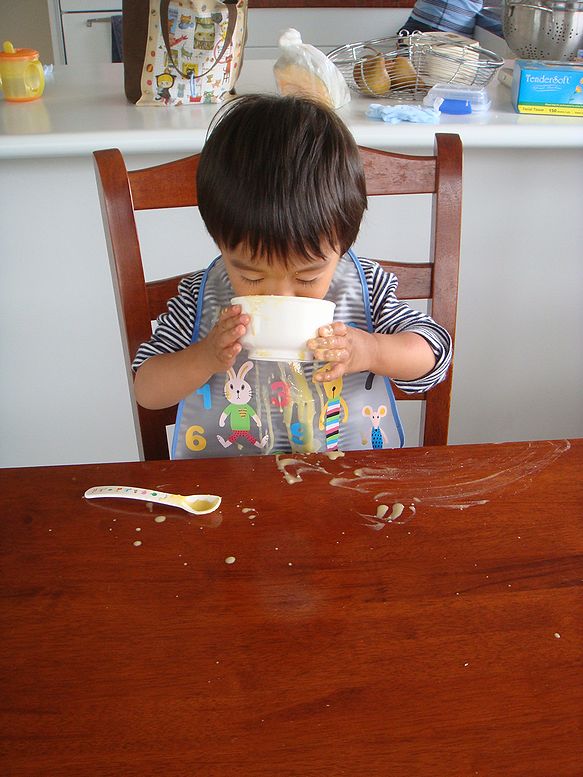 スープを全部飲みたいがために、上手にお椀を抱えるようになりました。