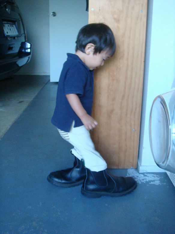時には、そっくり返って抵抗したり、壁に頭をぶつけて納得いかない度をアピールしたりもします。