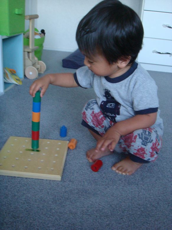 2つ3つ積んでうまく穴に入らないと、
