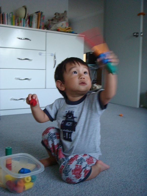 『きぃー』っとなって放り投げたり、大人が積み上げたものを倒すことや、大きなタッパーに