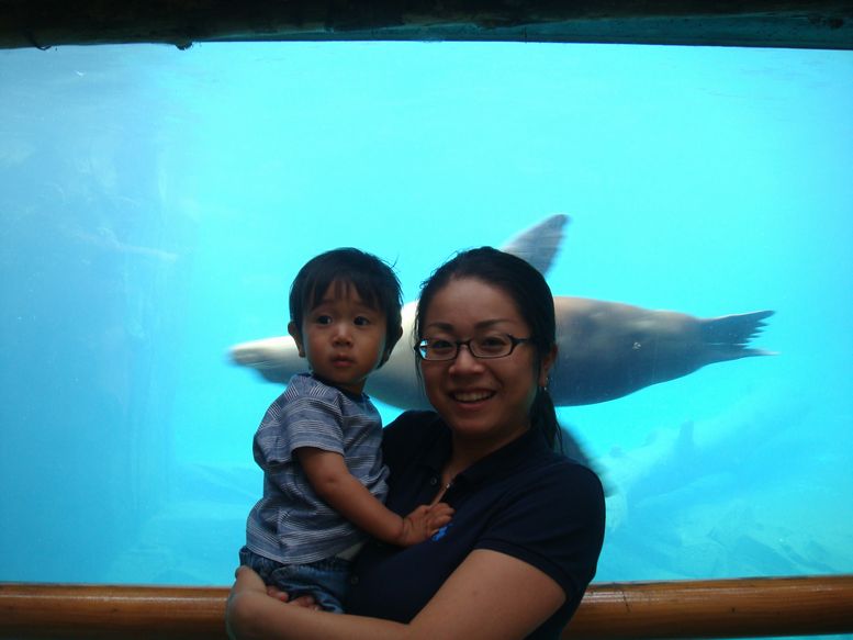 前回同様、あしかが泳ぐ姿にはとっても食いついていたセオ