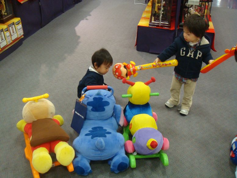 セオはりょうたろちゃんのおもちゃに目移りをして、あれをとったりこれをとったり