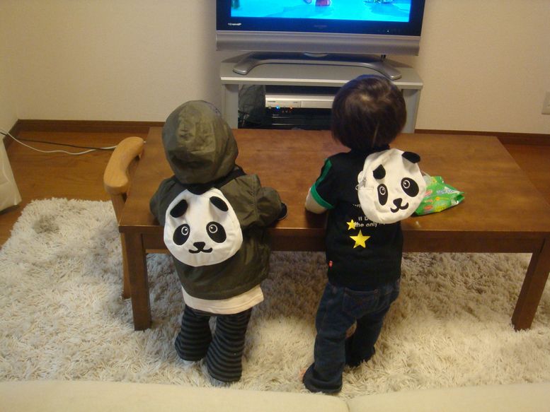 アンティーがおそろいのパンダリュックを買ってくれました。