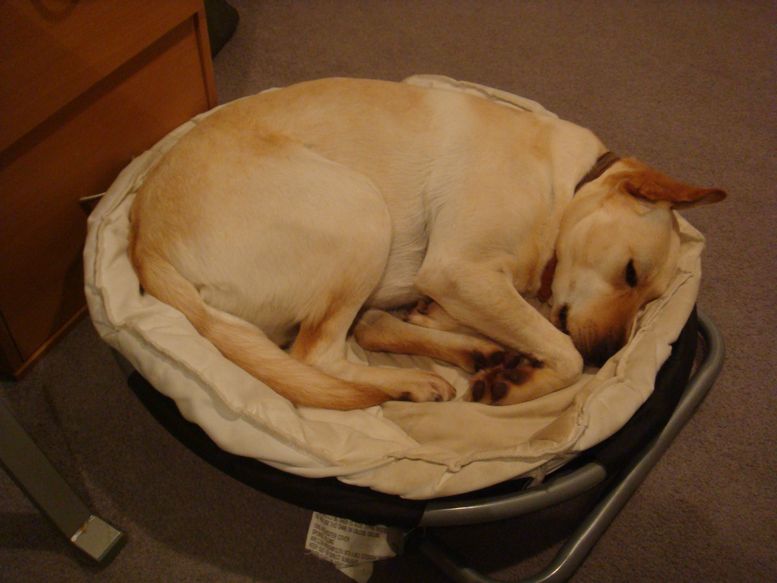 *折りたたみ部分が壊れてしまったので、ぺったんこにして置いておいたら、POが寝床に