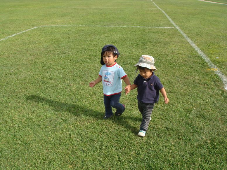だだっ広い芝生なので、あぶないこともなくちびたちを