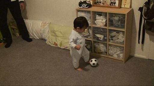 『おとといくらいから、セオがサッカーボールを蹴るようになったんだよ・・・』