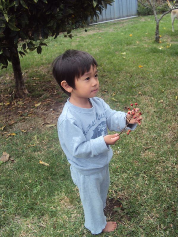 赤い実採集中