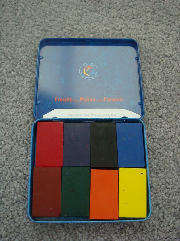 クレヨンの缶を持ち運び、ガコンガコン打ち付けて音を楽しむ(?!)ことに