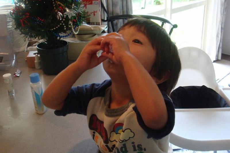 さて、プレイセンターから帰ってきたセオが牛乳を飲みたいと言ったので、