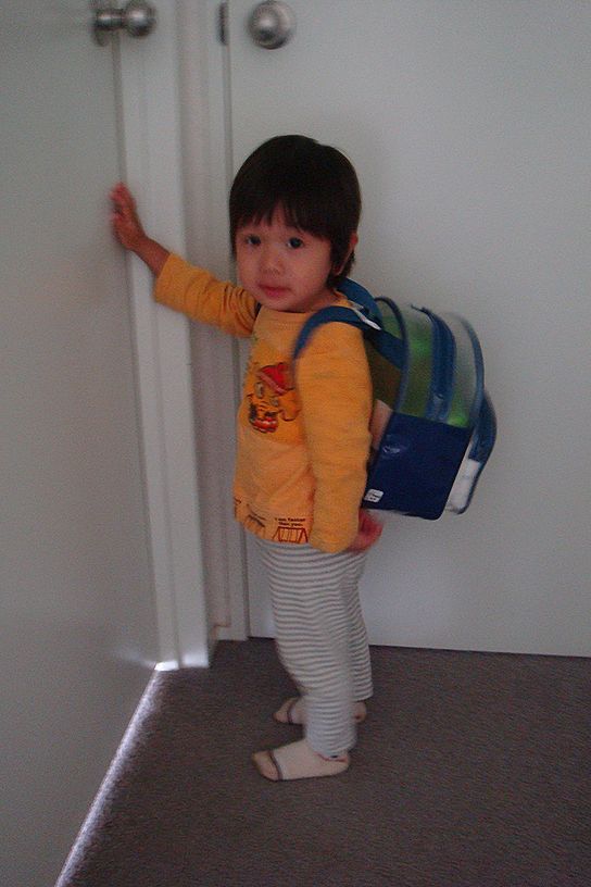ひっくり返りそうになりながらリュックを背負って出かけます。