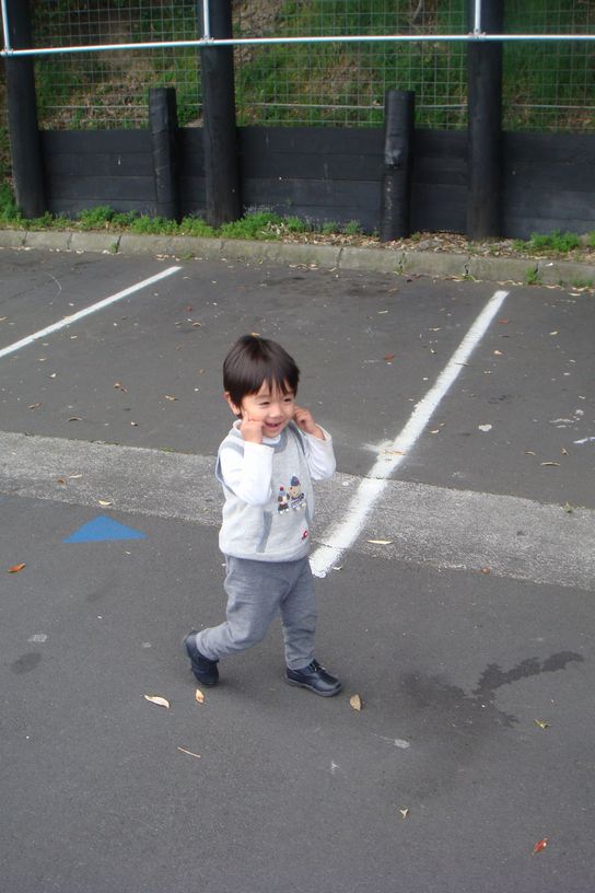 ぷれいせんたーでまみぃーのてをはなれてのびのびとあそんでいるせお、