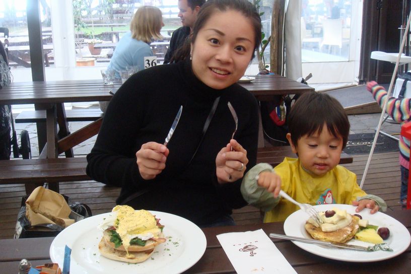 まっかちんとざりがにくんが食べたEggs Benedictはとてもおいしかった。